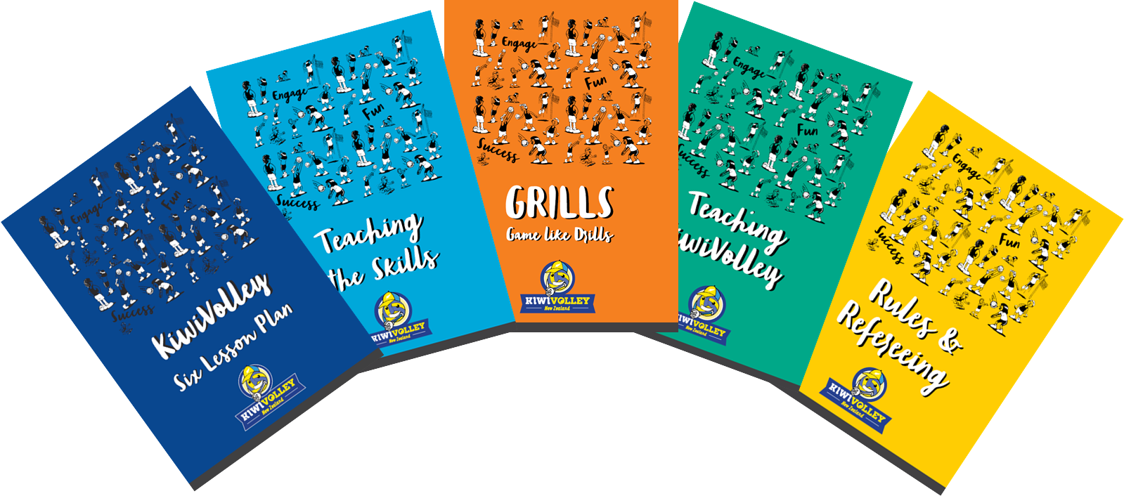 We have designed a range of KiwiVolley resources, including easy-to-follow booklets and videos to help you get children ENGAGED, encourage SUCCESS and have FUN!