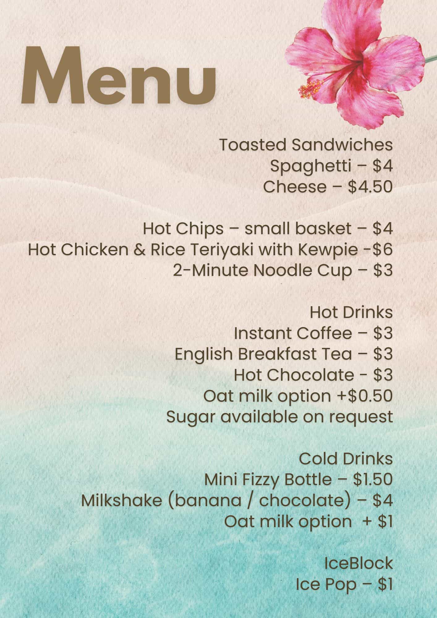 🍔 Canteen:• Bacon Rolls – $6• Additional items available (see menu below)